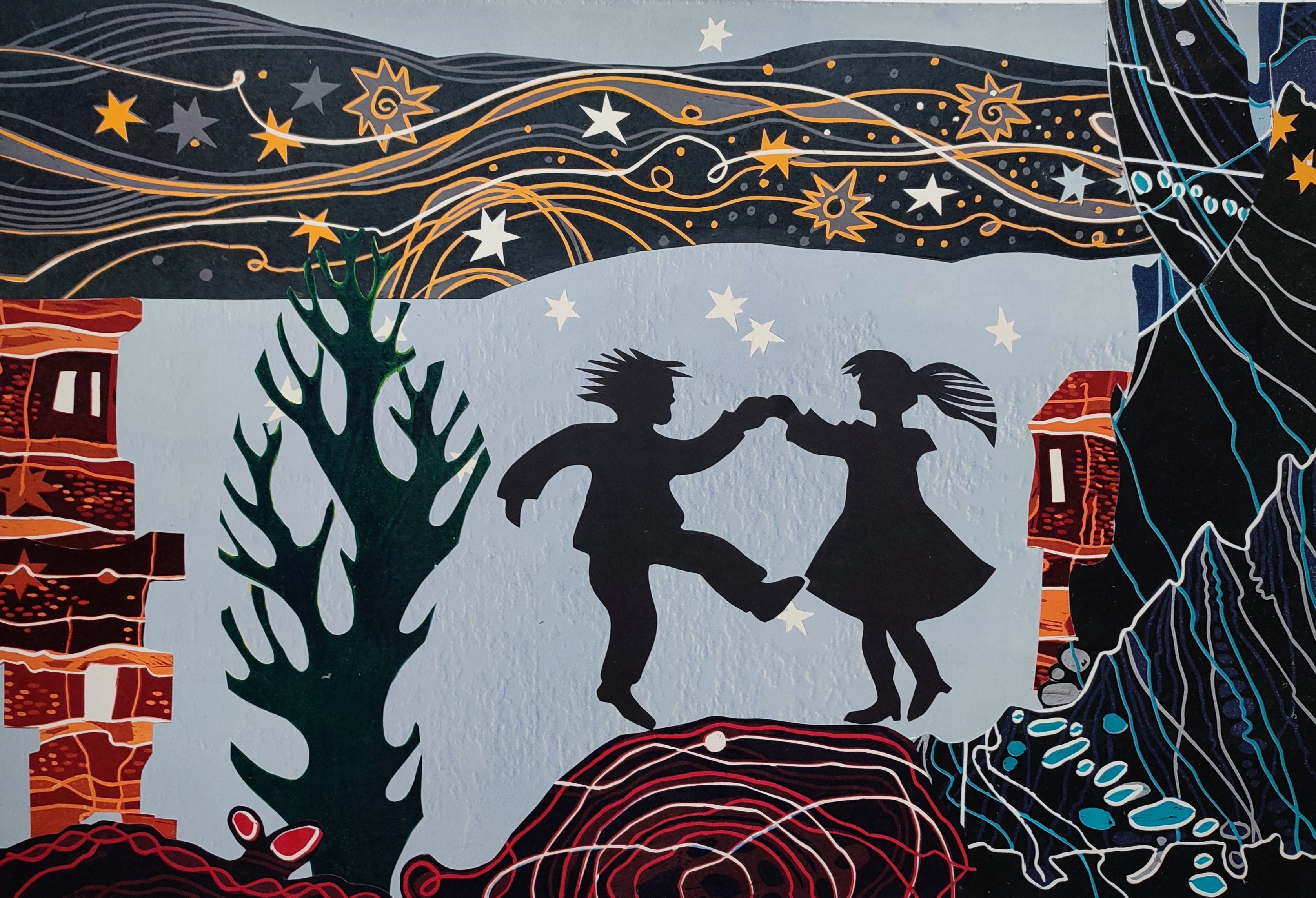 Versepos von Heinrich Heine im Papiertheater mit Collagen und Figuren von Christina Simon und Liedern zur Hakenharfe